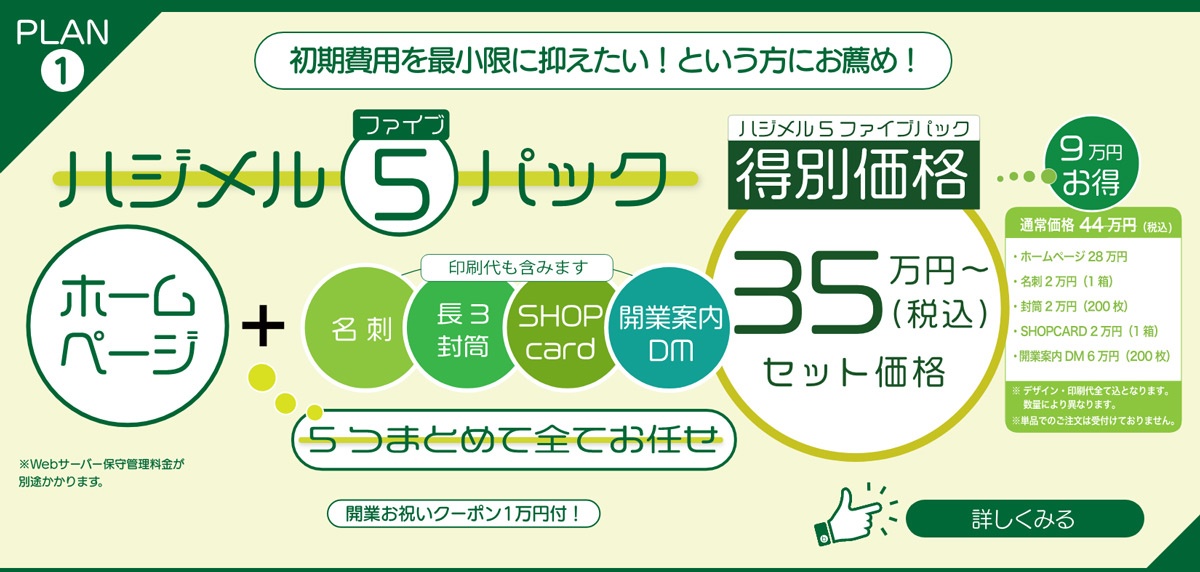 開業案内DMに名刺、事務用封筒も、事業案内パンフ、ポスター、お店の看板等